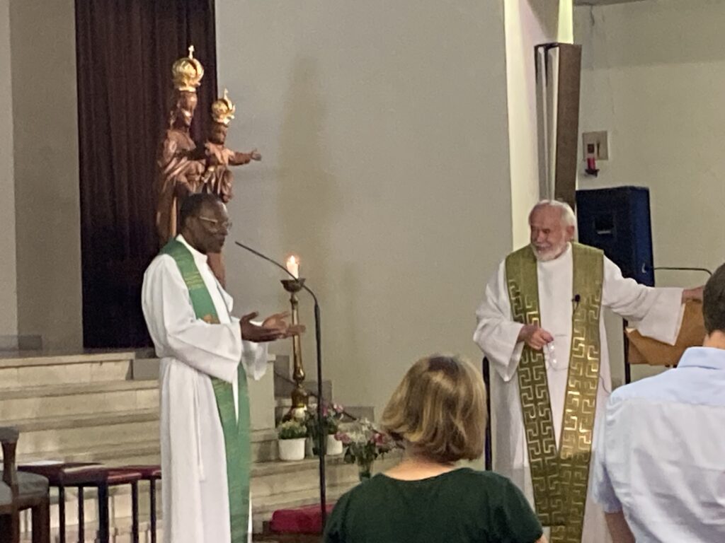 Hypolite A. Joe Adigwe, jetzt Priester in Nigeria, feierte sein 59. Primiz-Jubiläum in unserer Pfarrkirche, gemeinsam mit den „Pfarr-Geburtstagskindern” vom Monat Juni. Er freut sich schon darauf, im kommenden Jahr sein rundes Priesterjubiläum wieder mit uns zu feiern.