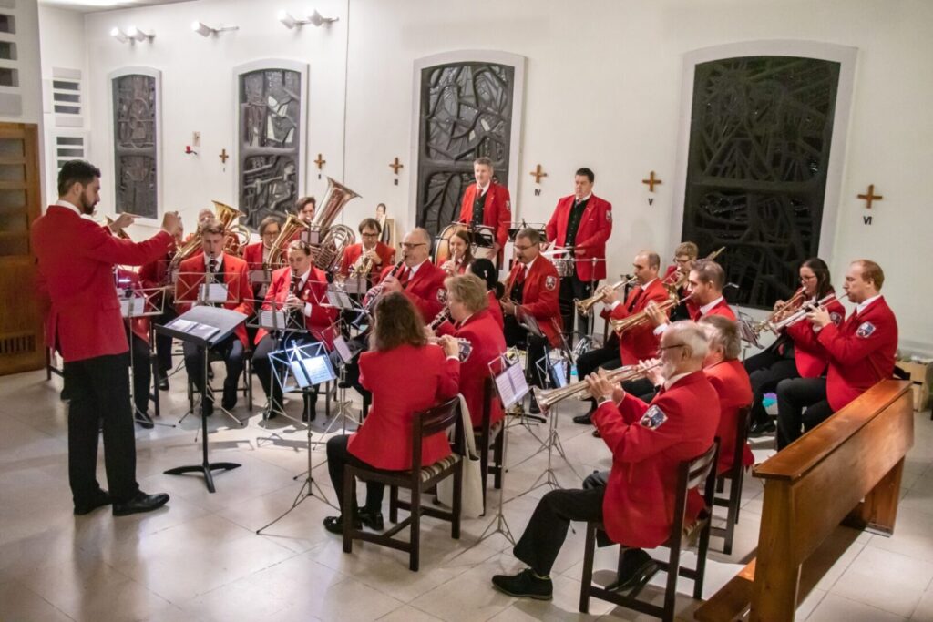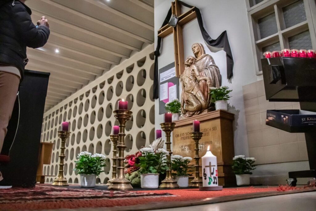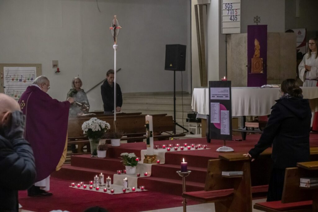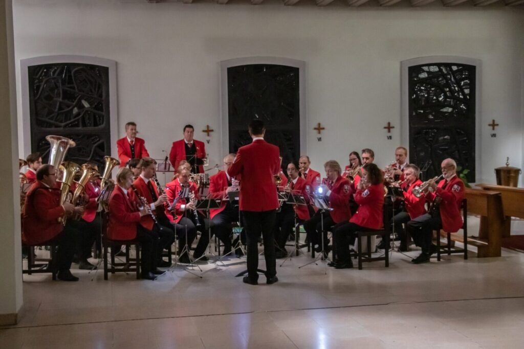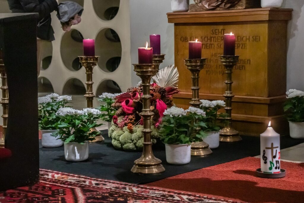 Der Kirchenchor und die Blasmusik Don Bosco umrahmten in der Abendstimmung den feierlichen Gottesdienst mit ihren berührenden Tönen. Eine Kerze wurde auch für die verstorbenen “Musizierenden” entzündet.