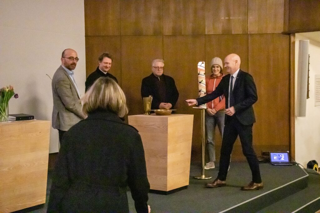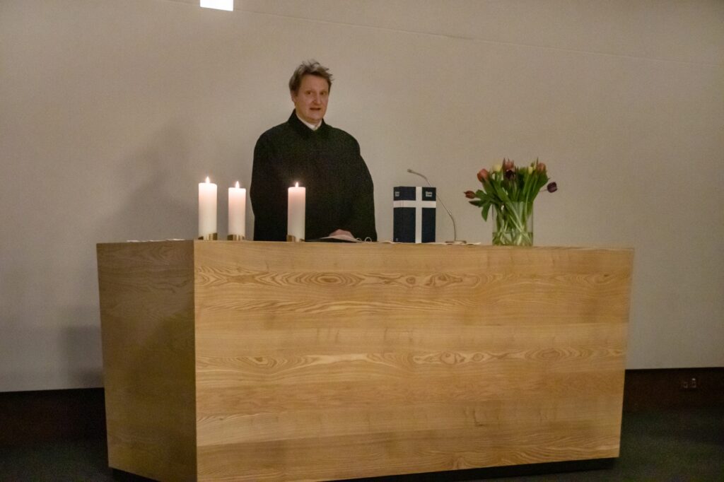 Pfarrerin Elke Petri führte zunächst durch ihre Kirche. Oliver Engelharth, Lektor der evangelischen Pauluskirche, leitete den anschließenden Gottesdienst für die Einheit der Christen. Das Wasser, als ein Symbol der Taufe, bildete das Hauptthema.