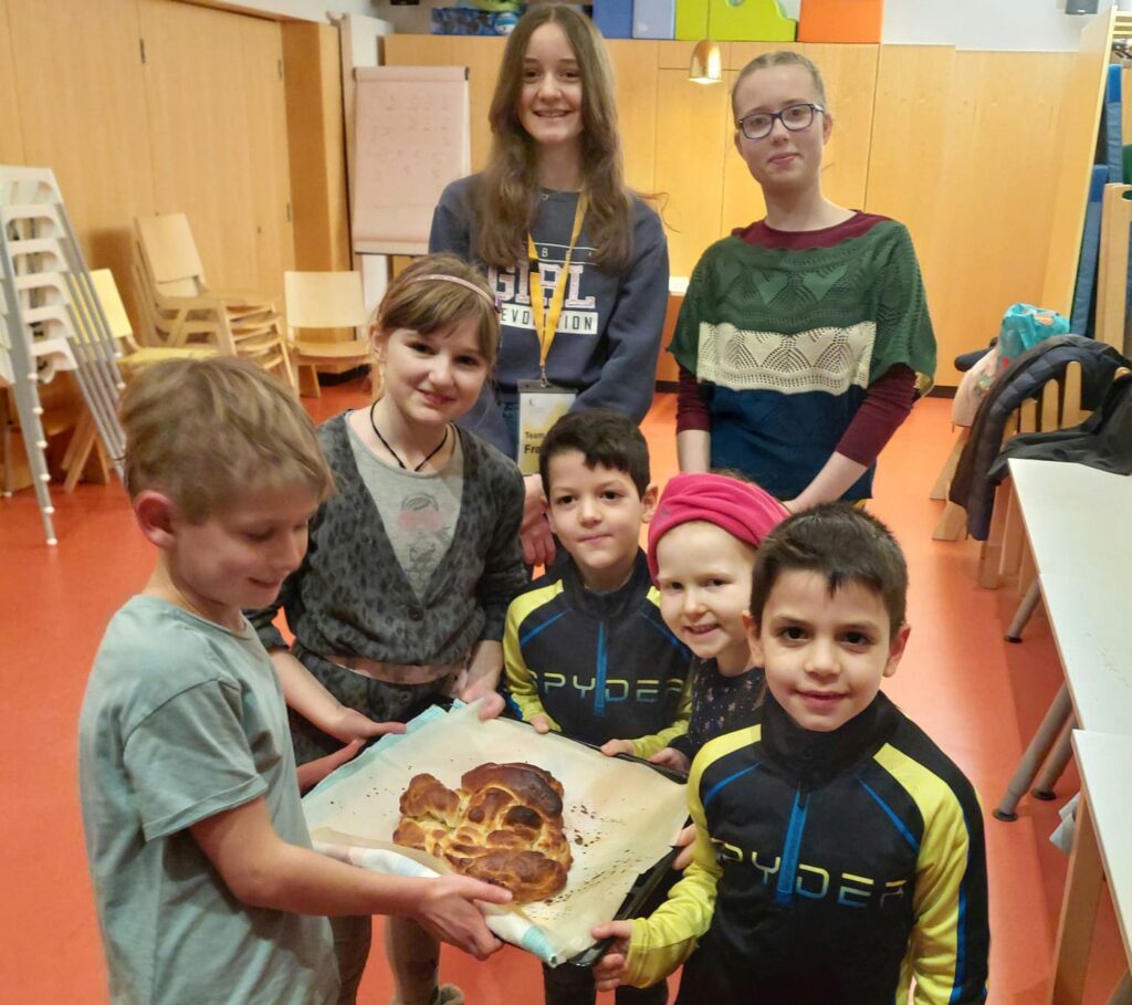Bei Kaffee, Kuchen und Getränken war vor und nach dem Gottesdienst die Möglichkeit, sich auszutauschen. Die Kinder waren mit Begeisterung dabei, ein Schiff aus Hefeteig zu backen und gemeinsam zu spielen.