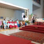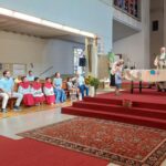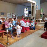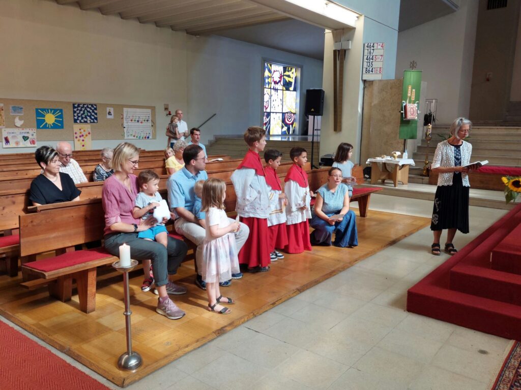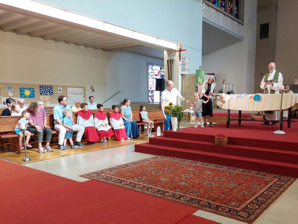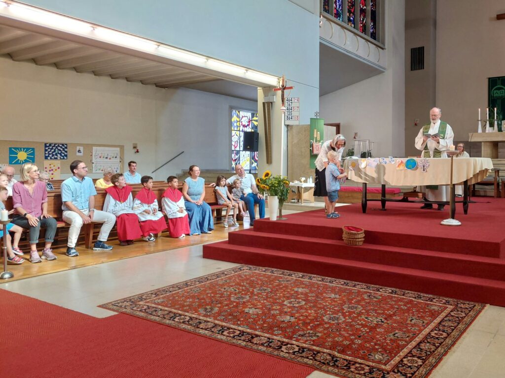 Am Sonntag, 1. September, “Beginn der Schöpfungszeit”, unterstützten die Kinder mit ausgedruckten Symbolen den Sonnengesang im Gottesdienst.