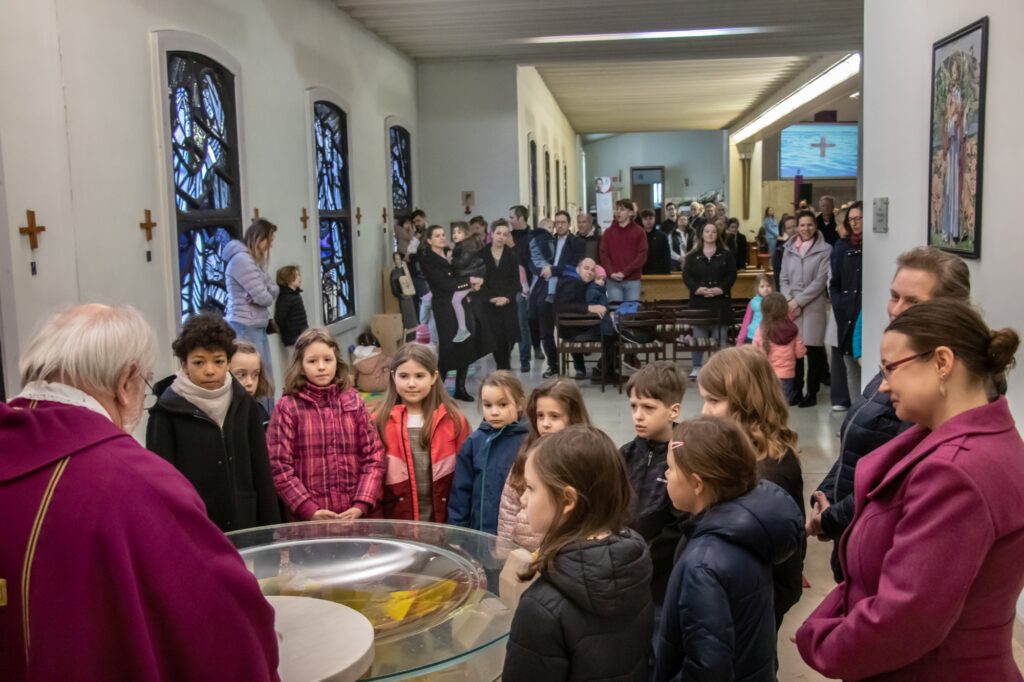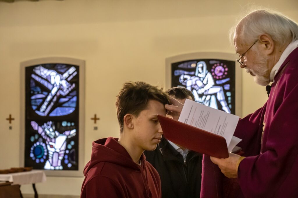 Ein junger Bursch erhielt die Katechumenensalbung, die auf die Taufe vorbereitet. Er wird im Ostersonntag-Gottesdienst gemeinsam mit seiner Schwester die Taufe empfangen.