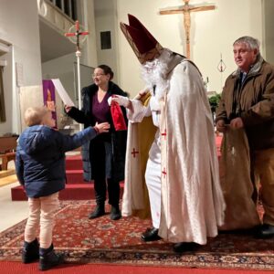 Am Abend des 5. Dezember versammelte sich eine große Schar an Kindern in der Don Bosco Kirche, weil der Nikolaus seinen Besuch angekündigt hatte. Natürlich würde für den Nikolaus gesungen und er hatte Geschenke mit dabei. Danach gab es noch Kinderpunsch und die Möglichkeit zu Spielen im Pfarrsaal.
