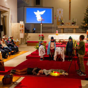 Der Heilige Abend begann in Neuerdberg, wie jedes Jahr, mit einer Andacht für Kinder. Die ganze Adventzeit über haben die Kinder die Krippe mit immateriellen Geschenken für Jesus gefüllt. In der Krippenandacht war es dann so weit, während des Krippenspiels wurde das Kind in die mit Geschenken gefüllte Krippe gelegt und von den Hirten beschenkt.