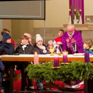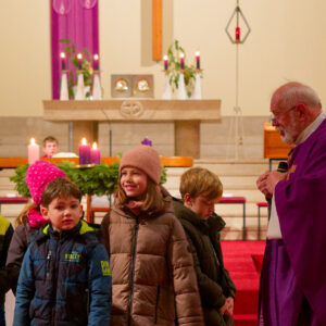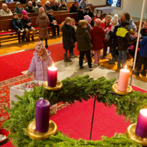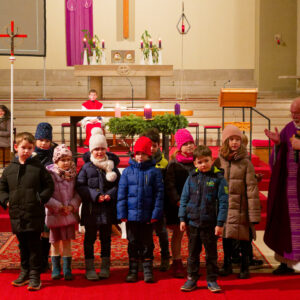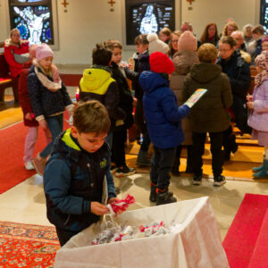 Die Erstkommunionskinder wurden der Gemeinde vorgestellt und die Vorfreude auf Weihnachten war natürlich auch schon zu spüren, wenn es darum ging, Jesus “ein Geschenk” zu machen, zum Beispiel indem wir ihm treu folgen.