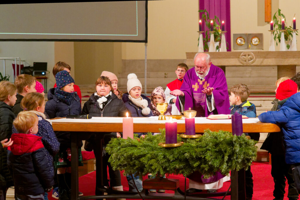 Die Erstkommunionskinder wurden der Gemeinde vorgestellt und die Vorfreude auf Weihnachten war natürlich auch schon zu spüren, wenn es darum ging, Jesus “ein Geschenk” zu machen, zum Beispiel indem wir ihm treu folgen.