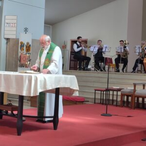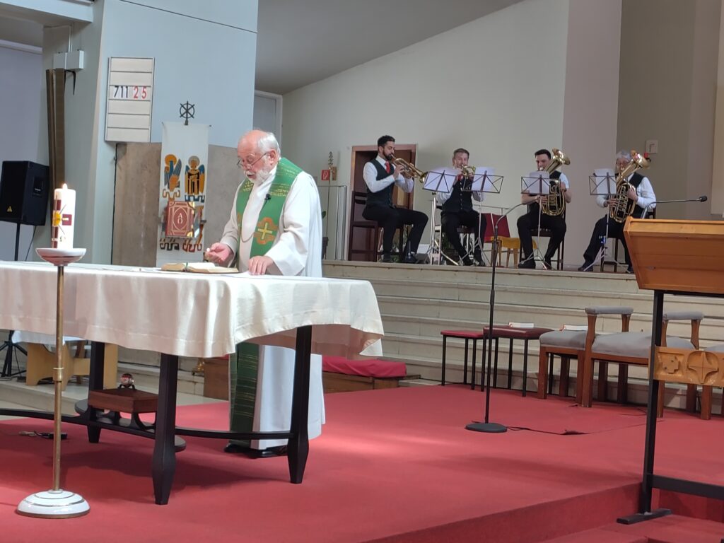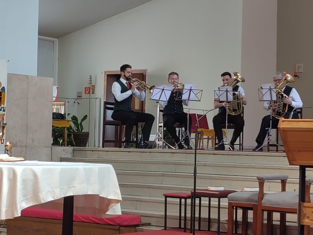Ein Quartett der Blasmusik Don Bosco gestaltete am Sonntag, den 22. Juni den Gottesdienst im Gedenken an ihren vor 7 Jahren verstorbenen Kapellmeister Josef Schuh.