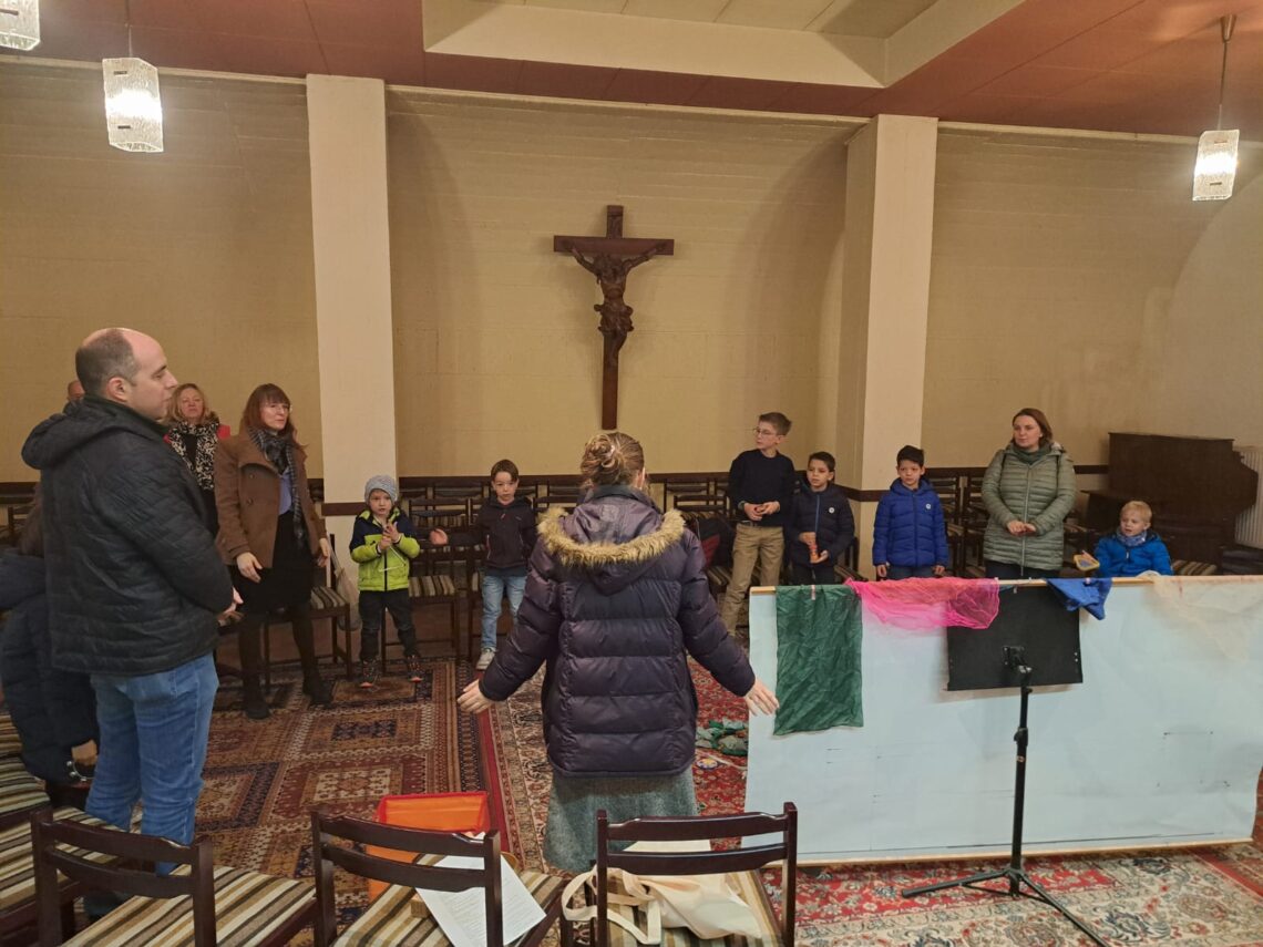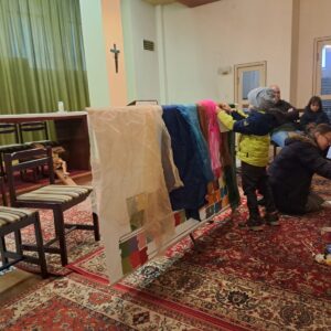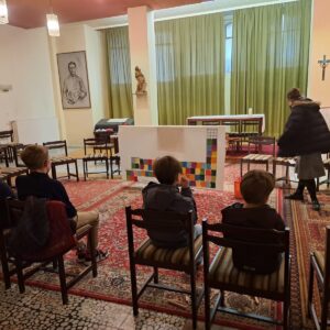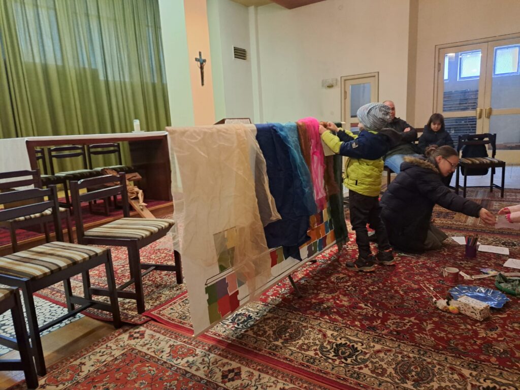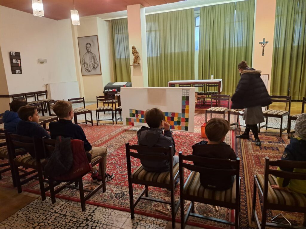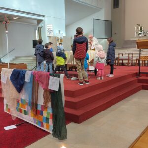 Heilige Räume können uns helfen, zur Ruhe zu kommen und auf Gott zu hören z.B. unsere Kirche. Auch Zeichen können dabei helfen, doch manchmal verstellen uns diese Zeichen auch den Blick darauf, worauf es wirklich ankommt. Dieser Gedanke wurde verdeutlicht, indem wir das Bild unserer Kirche tatsächlich mit solchen Zeichen verhängt haben. Vielleicht wurde dabei auch deutlich: es geht gar nicht nur um das Gebäude “Kirche”. Kirche, das sind wir alle, jeder einzelne ist ein Puzzleteil dieser Kirche.