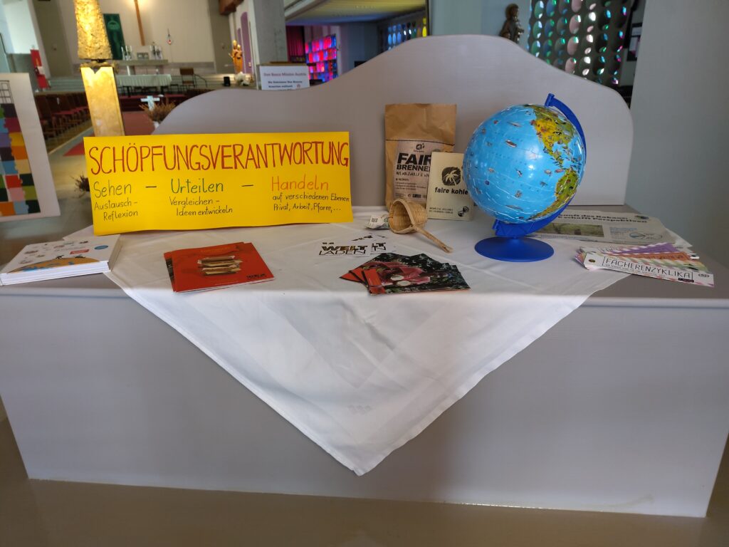 Am 1. September beginnen die Kirchen die Schöpfungszeit, die noch bis zum 4. Oktober andauert, um auf die Notwendigkeit der Bewahrung der Schöpfung aufmerksam zu machen. Auch wir in Neuerdberg versuchen, dieses Anliegen bewusst zu machen. Gleichzeitig wurde ein Fairtrade Markt angeboten, der nun regelmäßig stattfindenden soll, denn faire Bedingungen für alle und Bewahrung der Schöpfung gehören zusammen, wie Papst Franziskus in seiner Enzyklika Laudatio SII betonte.