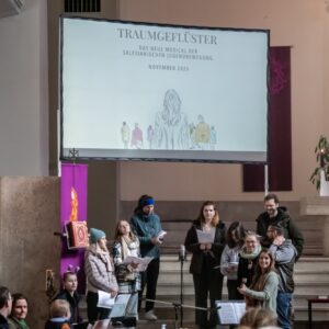 Sonntag ist der Tag des Herrn – Gott ruft! Dieser Sonntagsgottesdienst war geprägt von der musikalischen Gestaltung der Salesianischen Jugendbewegung Österreichs. Diese Gruppe von Jugendlichen befindet sich derzeit in der Vorbereitung auf das neue Musical „Traumgeflüster“, das im Herbst aufgeführt wird.