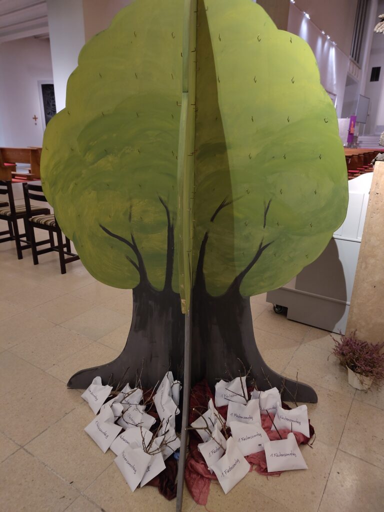 Im Laufe der Fastenzeit entstand so aus einem scheinbar toten Zweig ein blühender Baum, der schon beginnt, Früchte zu bringen.